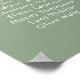 Make a stylish statement with the Sage Minimalist Script Bridal Shower Seating Chart. This modern seating arrangement will wow your guests with its simplicity and elegance. With its clean, contemporary look, this seating chart lets your bridal shower décor shine. The simple sage green script pairs nicely with blush, gold, or neutrals. Names printed clearly and concisely so guests can find their seat with ease.