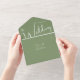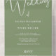 A sage minimalist wedding invitation with a typography design. This invitation includes a tear-away RSVP card. Simply add your information, add this invite to your cart, and enjoy your wonderful wedding.