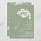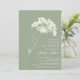 Beautiful baby shower invitation featuring a cream flower stem set on a sage green background. The back features an elegant coordinating floral back for an extra special touch.