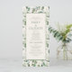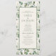 Sage green and moss green leaves on cream-coloured wedding program. Contact us for help with customisation or coordinating products.