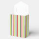 Sage, moss, red and ivory striped favour box with ribbon tie. Perfect for all gift decoration themes; simple/minimalist to maximalist depending on additional embellishments.