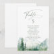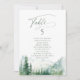Watercolor lush green pine forest and misty mountain with sage modern script, elegant and romantic, great personalized table seating cards for boho rustic wedding and mountain forest destination wedding in spring and summer.