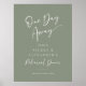 Modern Sage Green Welcome Rehearsal Dinner Sign. Personalised Simple Minimalist One Day Away Sign. Just click the customise further link, shown under the text personalisation area on the right, and choose your custom colour background. This sign poster template makes it fast and easy to create stunning additions to your wedding decor. Signs can be enlarged, there are many sizes to choose from, as well as options for custom framing and matting.