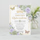 Sage Purple Floral Butterflies Gold Quinceanera Invitation