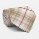This diagonal plaid necktie has a springtime or summertime vibe with shades of raspberry/pink and sage and cream accents on a light taupe background - by katzdzynes