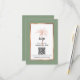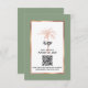 Provide your guests to reply to your wedding invitation and explore your wedding website with this elegant RSVP details and QR code design featuring modern script and black text including an artistic palm tree and metallic rose gold copper frame on the front of the card. A sage green background is on the front and back.