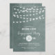 Chic modern summer wedding engagement party invitation design with simple elegant glowing string lights hanging across the top and a classy mix of modern and calligraphy script fonts on a printed faux watercolor texture background. A simple and stylish preppy design, perfect for summer! Click the CUSTOMIZE IT button to customise fonts, move text around and create your own unique one-of-a-kind invitation design.