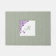 Cottage sage green stripe and floral secret garden pattern in purple with script font monogram, single initial doormat. Personalise with your own initial. Designed to match our Secret Garden Cottage Collection.