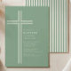 Celebrate your child’s baptism with this timeless sage striped cross invitation. Featuring a clean white line cross on a soft sage green background with coordinating classic stripes on the reverse, this design blends traditional church elegance with a subtle preppy touch.