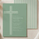 Celebrate this sacred milestone with this elegant sage striped cross Confirmation invitation. Featuring a timeless white line cross set against a soft sage green background with coordinating classic stripes on the reverse, this design blends preppy charm with traditional church style.