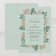 Delicate botanical sprigs in sage green and warm tan hues delicately embrace a central panel. This design evokes a soft, natural aesthetic, perfect for a romantic and serene occasion. The understated colour palette creates an atmosphere of gentle elegance.