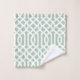 Sage green and white trellis patterned bath towel set personalised with your family monogram or other text in a rustic laurel branch. Use the design tools to choose any background colours, edit the text fonts and colours or upload your own photos to create a one of a kind design. The perfect touch for your modern farmhouse bathroom decor!