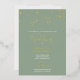 This wedding invitation features typography set in a stylish handwritten calligraphy foil script typography with event details in a classic white serif font on a solid sage background with a top boarder of gold stamped confetti. The invite card reverses to a complimentary sage green colour. An elegant yet stylish choice for weddings and rehearsal dinners by. To see the entire wedding stationery suite by Victoria Grigaliunas of DoTellABelle visit www.zazzle.com/dotellabelle