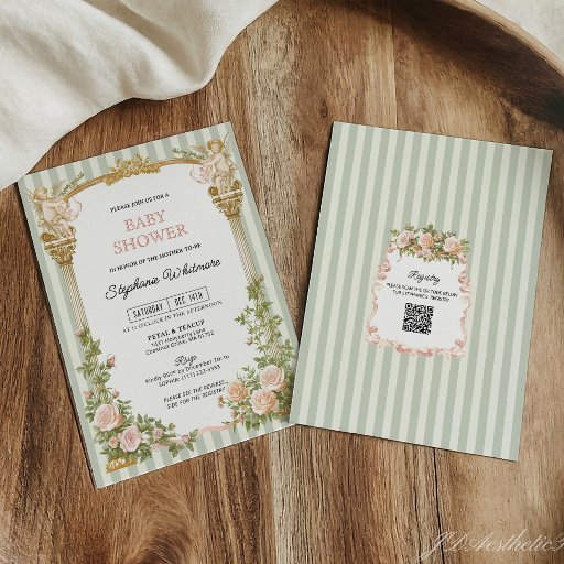 This vintage inspired bridal shower advice card brings a soft heirloom charm to your celebration with its gentle sage stripes and ornate gold frame that feel beautifully nostalgic. Guests can share their sweetest guidance and heartfelt wishes for the bride in a layout that is simple to write on and lovely to display. The romantic detailing pairs effortlessly with classic or Old Money bridal themes and creates a meaningful keepsake she will treasure for years. This card also coordinates seamlessly with the matching items in the collection so your entire event feels cohesive and thoughtfully styled.
