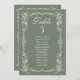 Guide guests to their seats with timeless elegance using this vintage Victorian-inspired hanging wedding seating chart table card. Designed with a sage background and ornate ivory botanical line art, this classic floral border frames your table number and guest names in beautifully styled typography. The hand-drawn vines and blossoms evoke old-world charm, making this design a perfect match for vintage, rustic, garden, or traditional wedding themes.