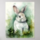 Beautiful watercolor image of an adorable Baby Bunny against a sage, green background.