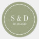 Designed to match our Cream and Ivory Organic Wedding collection, round stickers feature your initials or monogram and wedding date on a white font on a sage colour.