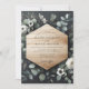 A moody and enchanting woodland aesthetic unfolds with a deep, cool-toned palette. Delicate white blossoms and lush eucalyptus foliage create a romantic, ethereal atmosphere. This design evokes a sense of natural elegance and mystery.