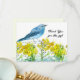 Thank you for the gift decorated with a bluebird on yellow rabbitbrush wildflowers sketched with ink and hand painted with watercolor. On the reverse side is a soft shade of green with a space to write a message. Find matching stickers and birthday card in my shop.