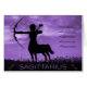 A silhouette image of a Sagittarian centaur against a purple-colored celestial background graces this zodiac card – enhanced by a list of the wonderful qualities of the Sagittarius astrological sign: Idealistic, Humorous, Optimistic, Generous, Passionate. Add your own personal message inside – or leave blank if desired. Perfect for a birthday or all-occasion card.