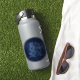 Sticker featuring the symbol for Sagittarius in soft silver blue, overlaid with the stars of the constellation, against a starry sky background graded from deep midnight blue to black