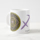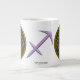 This Sagittarius themed mandala features an amethyst stone surrounded by the symbol for the sign, the constellation, and the alchemical symbol for Fire among filigree and weaves. This mug is available in jumbo, espresso, and bone china sizes and styles.