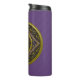This mandala was designed for the zodiac sign, Sagittarius, depicting an amethyst stone in the centre surrounded by elements representing the sign, such as the symbol for the sign, the constellation, and the alchemical symbol for Fire, as well as filigree vines and weaves wrapping it all into a solid image in shades of purple, gold, and black.