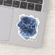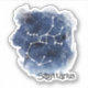 This contour-cut sticker features an artistic representation of the Sagittarius constellation set against a watercolor backdrop that mimics a starry night sky. The design incorporates shades of deep blue and white, suggesting the vastness and mystery of space. The constellation itself is depicted by simple white lines connecting stars, which are represented by brighter white dots. Below the constellation, the word “Sagittarius” is written in a clear, bold typeface, grounding the design with a touch of modernity.