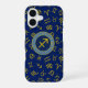 Sagittarius Zodiac+Astrology Symbols Ptn Gld+Blues iPhone 16 Case