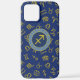 Sagittarius Zodiac+Astrology Symbols Ptn Gld+Blues iPhone Case