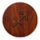 A Sagittarius zodiac sign on a rich brown mahogany wood grain style background. A classy modern racy design for a great custom birthday gift idea.