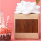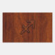 A Sagittarius zodiac sign on a rich brown mahogany wood grain style texture print background. A classy modern racy design for a great custom birthday gift idea.
