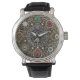 Sagittarius Watch featuring: vintage industrial, Steampunk watch styling with easily visible large numbers. Original watch face design covered with gold, diamonds, emeralds, ruby gem stones and astrological zodiac signs circle. (watch background is printed / doesn't contain actual gems).