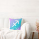 A chic throw pillow featuring the astrology symbol for Sagittarius over a blue and purple gradient background. For someone whose birthday is between November 22 and December 21.