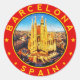 Badge of Barcelona skyline, Barcelona cityscape with flag of Spain colors and Basílica de la Sagrada Família, rounded shape.