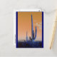 A Saguaro cactus in blue against a complimentary orange desert sky.