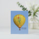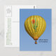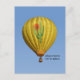 This hot air balloon is named Sahuaro Sunrise. Its bright yellow and smiling cactus are displayed on a sky blue background along with its name on this postcard.