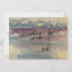 Watercolor serene waterscape in blues and magentas presents its colours as early evening approaches. Calm seas with a sailboat illustration sails away. Symbolic, inspiring, majestic, serene.