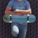 Skateboard featuring a photo of a sailboat floating through the beautiful blue waters of Lake Huron at Mackinac Island Michigan.