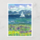 Sail Boat Mountain Lake Purple Watercolor Lupines Postcard