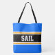 SAIL Fun Athletic Bright Blue Black Orange Stripes Tote Bag