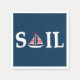 Sail text design illustration with sailing boat decoration on dark blue background. It is possible to change the background colour and to add different one to the design with your choice.