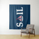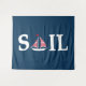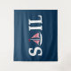 Sail text design illustration with sailing boat decoration on dark blue background. It is possible to change the background colour and to add different one to the design with your choice.