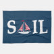 Sail text design illustration with sailing boat decoration on dark blue background. It is possible to change the background colour and to add different one to the design with your choice.