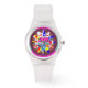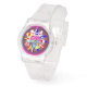 Sail Yacht Port Richman Nautical Girly Marine Watch. A sportive ladies pink dial fully customisable image of a yacht sailing on the ocean and texts "Port Richman", text on crest "Yachting", initials "P" and "R" and fully customisable text "Sail" with marine language sign flags numbers 1 to 12 on the hours nautical wristwatch. A cool and stylish pink sailing watch for women water sports fans and boats and yacht owners!