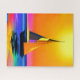 Puzzle in a vibrant sailboat with colourful sails glides across the water, reflecting the stunning hues of a radiant sunset. The sky and sea create a mesmerising blend of orange, yellow, blue, and coral tones