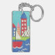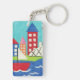 Sailboat and Hot Air Balloon with Cityscape Key Ring