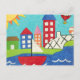 Sailboat and Hot Air Balloon with Cityscape Postcard