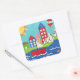 Sailboat and Hot Air Balloon with Cityscape Square Sticker