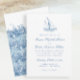 Set sail for your perfect coastal wedding with our elegant blue sailboat and waves wedding invitation. Designed for ocean lovers, this nautical-themed invite evokes serene sea breezes and timeless charm. Ideal for celebrations at premier venues like Wychmere Beach Club on Cape Cod, Gurney's Montauk, Belle Mer in Newport, and yacht club weddings along the East Coast. Artwork by Coastal Map Designs.